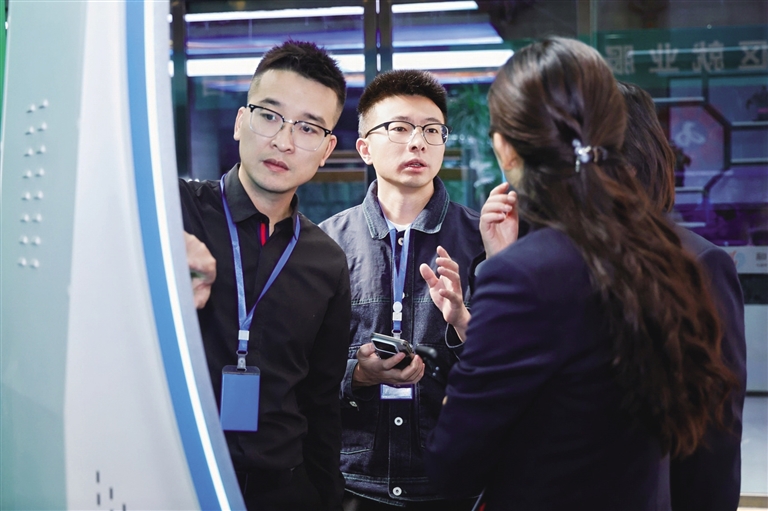 數字技術應用體驗展區工作人員正在講解AI技術應用。