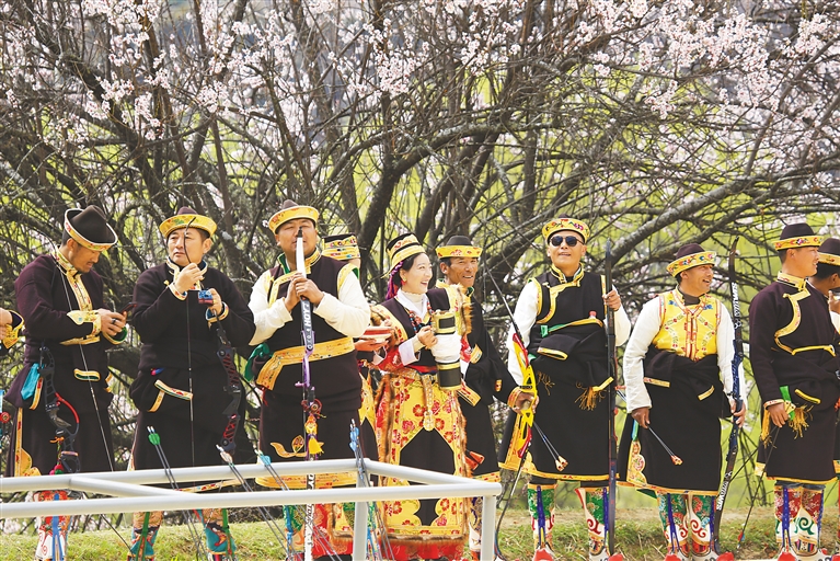 “工布響箭”是工布地區特有的一項民間傳統體育競賽項目,距今已有1500多年歷史,被列入第二批西藏自治區非物質文化遺產名錄。在位于林芝市的魯朗鎮扎西崗村,“工布響箭”傳承人頓珠將自家院落改造為工坊。他不禁感慨:“過去響箭只在節日射,如今天天有游客來學,很受歡迎。”