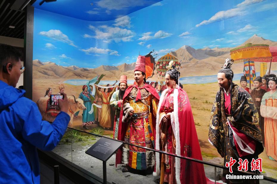 7月15日,在位于西藏拉薩的西藏博物館,文成公主進藏的《柏海迎親》塑像吸引觀眾。據了解,西藏博物館設有基本陳列《雪域長歌—西藏歷史文化展》《離太陽最近的人—西藏民俗文化展》,充分展示西藏地區歷史發展進程與文化面貌。中新社記者 張祥毅 攝