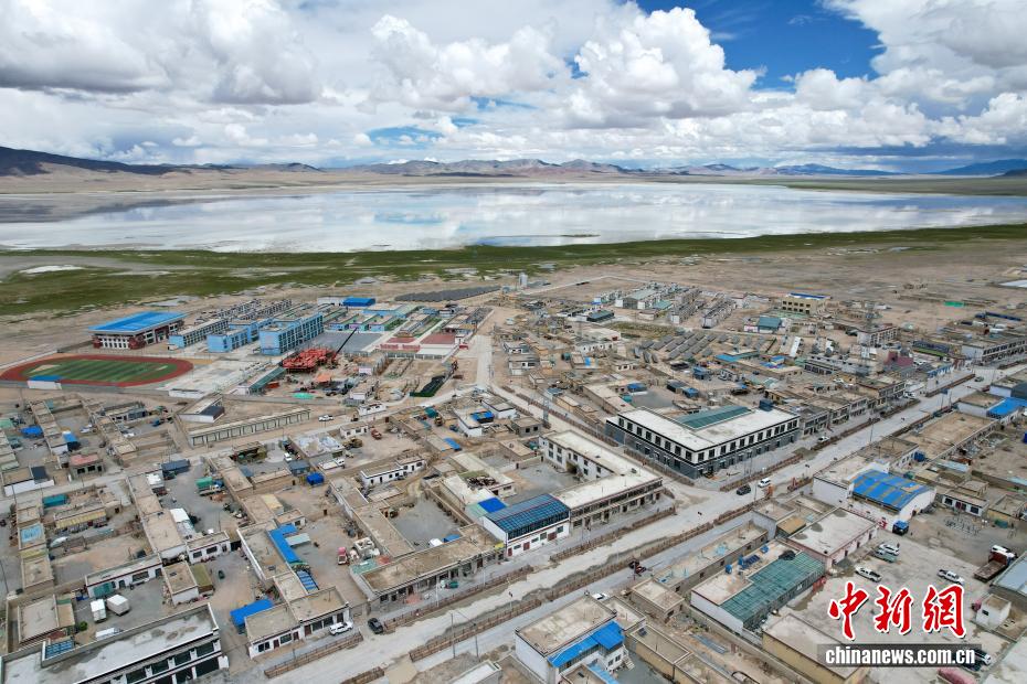 7月20日,在西藏阿里地區革吉縣拍攝的鹽湖鄉,鹽湖鄉是“鹽羊古道”的重要節點之一。一千多年前,阿里地區有50多家駐扎的鹽幫,將自然鹽用羊馱牛背邊放牧邊運輸的方式,運送到普蘭、日喀則、印度、尼泊爾等地,并用以物易物的方式換回青稞、磚茶、布料等日常生活所需的物品,從而孕育了遠負盛名的“鹽羊古道”傳奇。近年來,當地開辦粗鹽巴加工廠、打造“鹽羊古道”旅游品牌等方式,使千年“鹽羊古道”煥發新生機。(無人機照片)中新社記者 張祥毅 攝