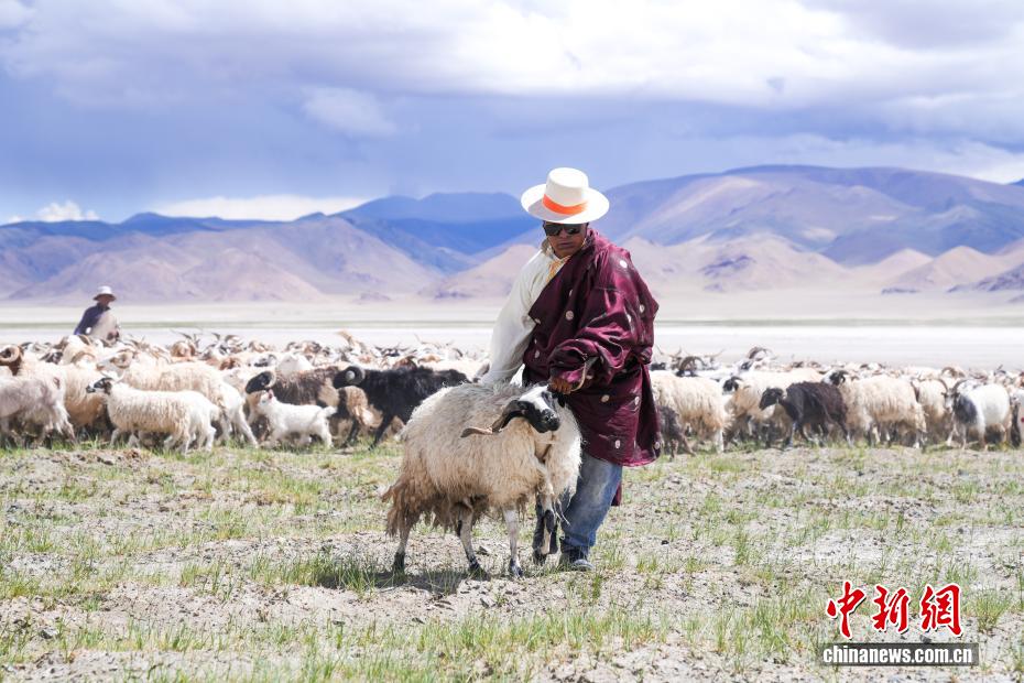 7月20日,在西藏阿里地區革吉縣鹽湖鄉,牧民將已馱負鹽袋的羊放歸羊群。一千多年前,阿里地區有50多家駐扎的鹽幫,將自然鹽用羊馱牛背邊放牧邊運輸的方式,運送到普蘭、日喀則、印度、尼泊爾等地,并用以物易物的方式換回青稞、磚茶、布料等日常生活所需的物品,從而孕育了遠負盛名的“鹽羊古道”傳奇。近年來,當地開辦粗鹽巴加工廠、打造“鹽羊古道”旅游品牌等方式,使千年“鹽羊古道”煥發新生機。中新社記者 張祥毅 攝