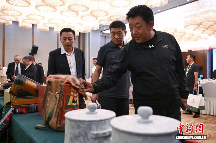 圖為參會人員參觀特色產品展示區。貢嘎來松 攝