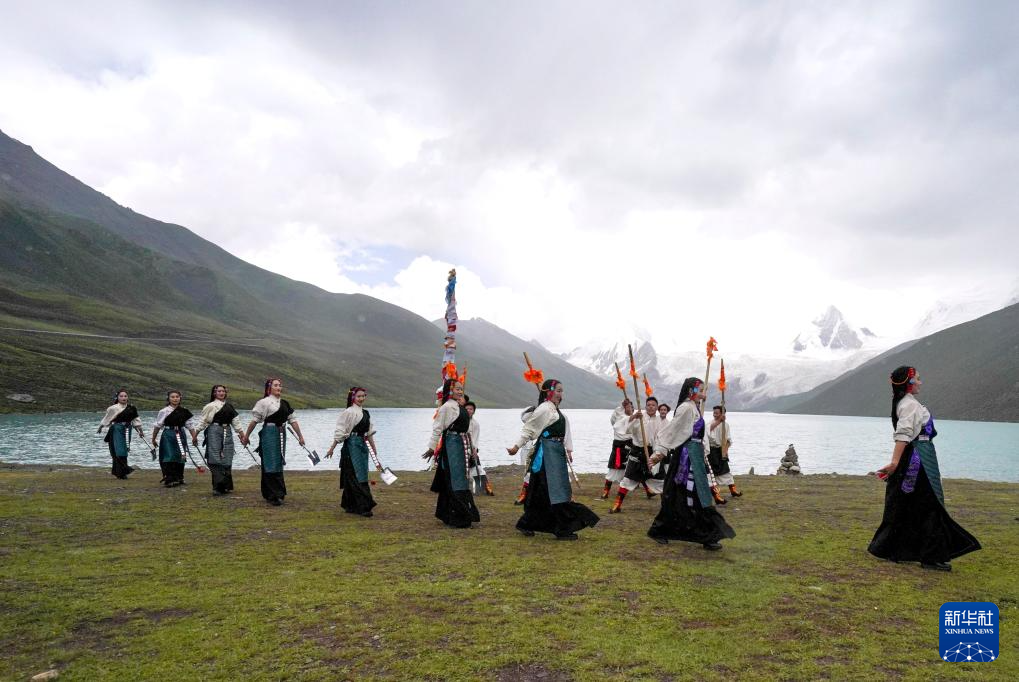 西藏那曲市比如縣藝術團的演員在薩普雪山景區為游客表演(7月19日攝)。新華社記者 晉美多吉 攝