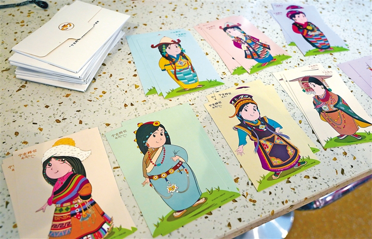目前,藏博郵禮郵政服務點已向公眾免費提供13枚主題印章的集章服務。其中,鎮(zhèn)館之寶章以昌都卡若遺址出土的雙體陶罐為原型,將新石器時代的歷史厚重凝練于方寸之間;格桑花與張大人花章則以高原特色花卉為媒,定格雪域的生態(tài)之美;而博物館原創(chuàng)卡通形象“寧吉姆啦”的萌趣造型,更以年輕化表達拉近了公眾與文化遺產(chǎn)的距離。此外,還特別提供了手寫藏文祝福服務——工作人員日均書寫40至70張、旺季單日超百張的藏文版“扎西德勒”,這不僅承載著語言藝術的魅力,更以筆尖的溫度將人文關懷鐫刻成游客珍藏的“文化信物”。