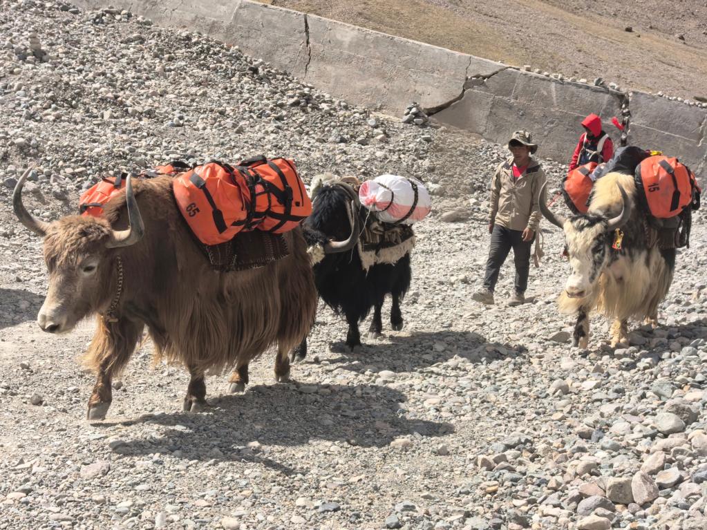 在徒步路線的起點廣場上,一隊隊牦牛隊整裝待發,游客的行李正被穩穩地放上牛背。不少外籍游客雇傭本地牧民,利用牦牛馱運行李并提供向導服務。陳賢剛介紹,旅游業已成為巴嘎鎮經濟的主導產業,當地居民收入中約一半來自旅游相關工作。