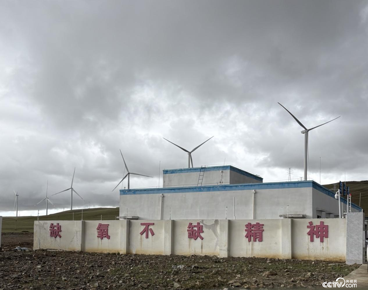 在哲古草原,巨大的風機葉片緩緩轉動,劃破長空。這里是三峽措美哲古風電場——全球海拔最高的在運行風電場,墻上“缺氧不缺精神”的標語,正是技術突破與綠色發展的信念的最好寫照。