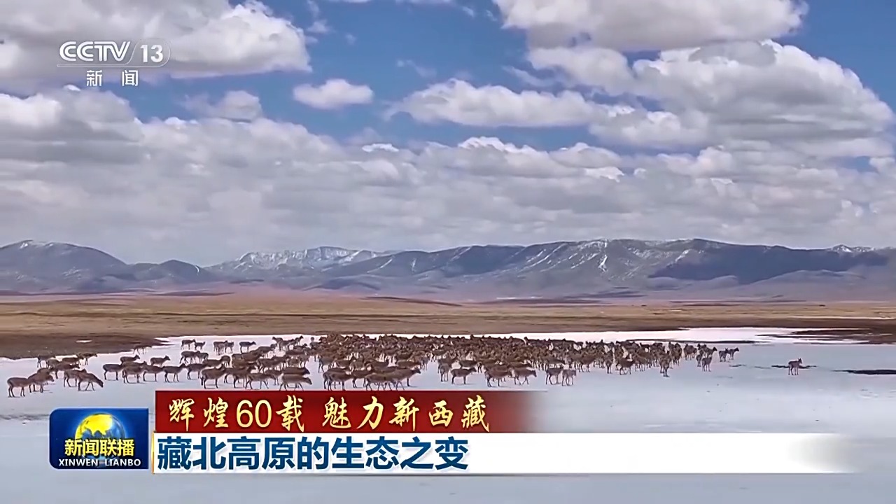 那曲市國家公園創建與建設領導小組辦公室負責人 何應前:通過兩年多這個監測,我們對重要的旗艦物種的恢復情況進行了一個初步的統計,像藏羚羊的數量穩步提升。從最先開始的三江源國家公園唐北區域里面只有六萬多只,增加到現在的接近十六萬只。