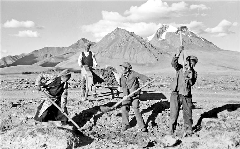 圖為上世紀70年代,加加養護段養路職工戰斗在雪山公路上(資料圖片)。 蘇遠忠 攝