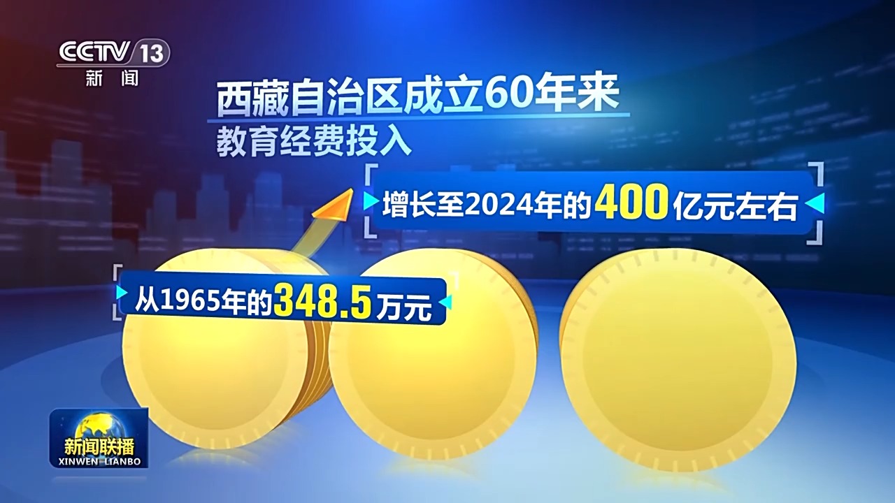 西藏自治區成立60年來,教育經費投入從1965年的348.5萬元增長至2024年的400億元左右。從2012年開始,西藏在全國率先建立從學前到高中的15年公費教育體系。如今的西藏,已建成涵蓋學前教育、基礎教育、職業教育、高等教育等完整的現代教育體系。從文盲率高達95%以上,到如今的新增勞動力平均受教育年限達13.1年,西藏教育實現了“歷史性跨越”。