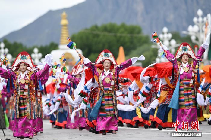 8月21日,西藏自治區成立60周年慶祝大會中的游行表演。貢嘎來松 攝