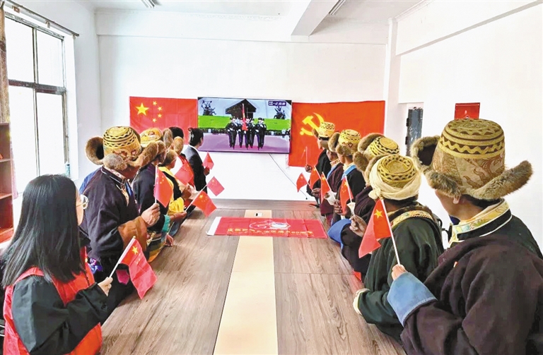 山南市隆子縣玉麥鄉(xiāng)干部群眾、派出所民警等來到愛國守邊先進事跡展館,集中收聽收看了慶祝大會直播。玉麥村的大學生尼瑪次仁說:“當看到山南彩車上‘家是玉麥,國是中國’的標語時,我感到非常驕傲與自豪。作為新時代青年,我要傳承好發(fā)揚好愛國守邊精神,時刻準備著到祖國和人民最需要的地方去。”