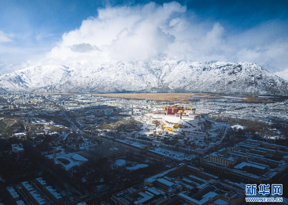 2月15日,西藏拉薩,雪后的拉薩周圍群山白雪皚皚,布達拉宮風景如畫。
