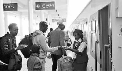 由中國企業采用全套中國標準和中國裝備建造的非洲第一條跨國現代電氣化鐵路——亞吉鐵路于2018年1月正式投入商業運營。圖為3月25日,在埃塞俄比亞首都亞的斯亞貝巴,列車員在亞吉鐵路拉布車站檢票。新華社發