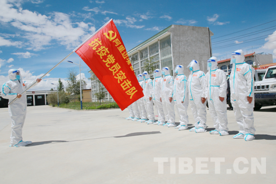 圖為阿里邊境管理支隊“抗疫黨員突擊隊”揮旗出發 攝影:張拴根