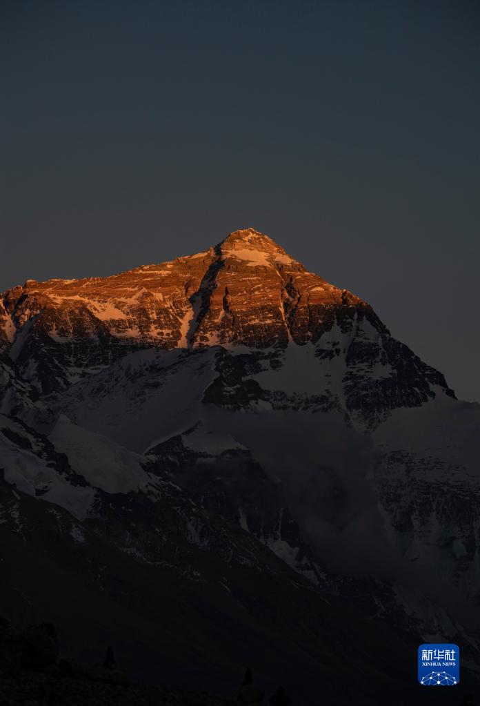 6月4日,最后一抹陽光即將從珠峰頂上消逝。新華社記者 費茂華 攝