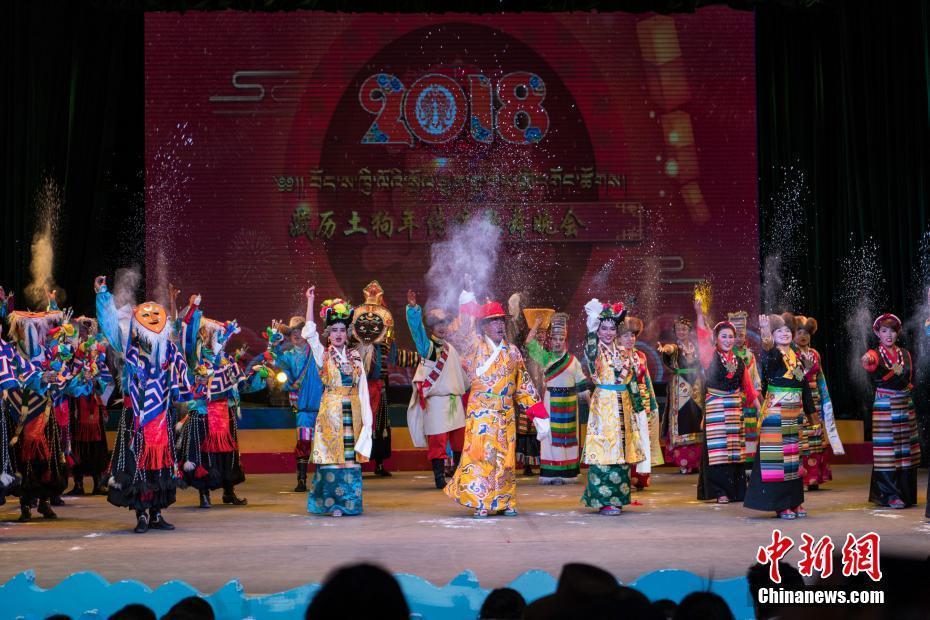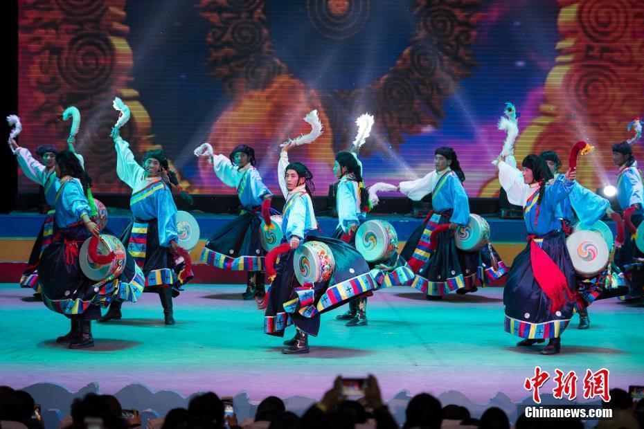 2月10日,隨著2018年春節(jié)和藏歷新年的日益臨近,西藏拉薩的節(jié)日氣氛越來(lái)越濃。當(dāng)晚一場(chǎng)傳統(tǒng)歌舞晚會(huì),提前為拉薩民眾送去新春的祝福。晚會(huì)以傳統(tǒng)藏戲、歌舞、小品等表演形式,把藏民族古老的藏戲、卓舞、鍋莊等非物質(zhì)文化遺產(chǎn)搬到了新年舞臺(tái)。圖為中國(guó)國(guó)家級(jí)非物質(zhì)文化遺產(chǎn)《卓舞》表演。中新社記者 何蓬磊 攝