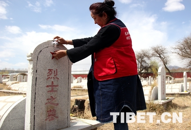 在肅穆寧靜的拉薩烈士陵園內(nèi)也有很多不知不知已在此長眠了多少年的無名烈士。讓人欣慰的是,每年清明時節(jié)都有人來為他們進行祭掃。扎西新村社區(qū)副主任張艷說:“扎西新村社區(qū)的志愿者們每年都會自發(fā)前來為陵園內(nèi)的無名烈士們祭掃,讓無名英雄們不孤單。”(中國西藏網(wǎng) 圖、文/賈華加)