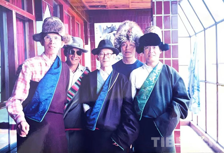 圖為1997年8月,海峽兩岸藏學(xué)研討會(huì)后,兩岸藏學(xué)學(xué)人在青海黃南州河南蒙旗考察,陳慶英先生(中)和與會(huì)部分學(xué)者合影
