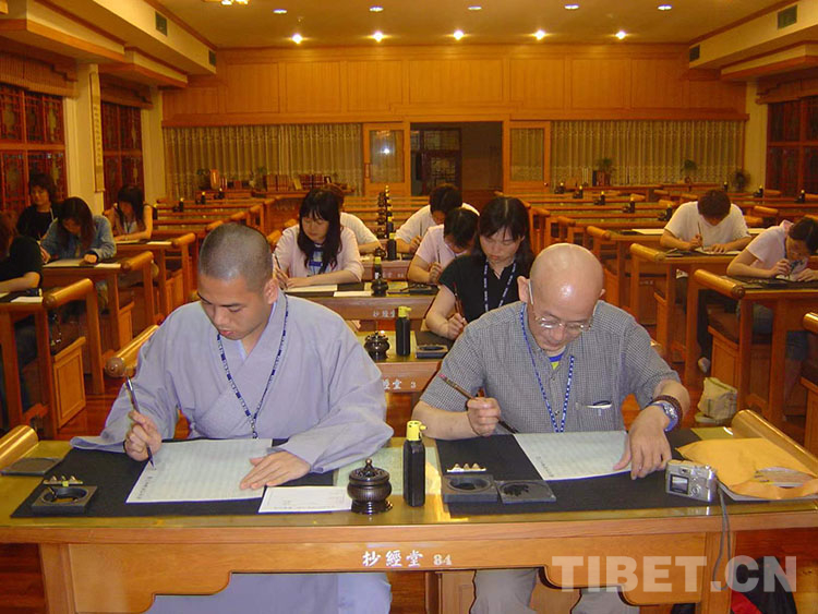 圖為2004年陳慶英先生在臺(tái)灣講學(xué)期間,于佛光山體驗(yàn)抄經(jīng)