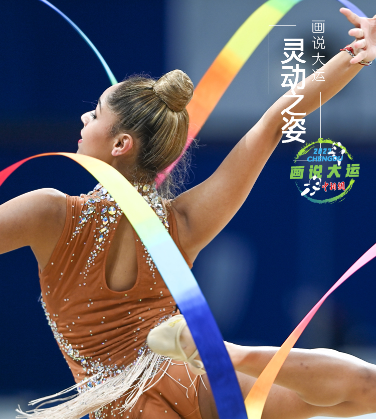 在成都第31屆世界大學(xué)生夏季運動會藝術(shù)體操的賽場上,運動員們用柔和挺拔的身姿,向我們詮釋了青春的靈動之美。輕盈流暢的體操動作搭配剛?cè)岵?jì)的舞姿,這是力與美的結(jié)合,更是柔與韌的藝術(shù)!圖為南非選手DEWAN Azra參加藝術(shù)體操個人全能決賽。