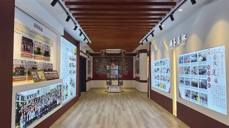 紅領巾講解員楚成白姆指著老照片介紹道:“這是學生當時加入少先隊時的情景,這是學校成立時的教室畫面,這張是建校初期教師自編的教材圖片。”在上世紀七八十年代,學校組織學生成立了腰鼓隊、舞蹈隊等,學生們經常登上大型活動的舞臺,用精彩的文藝表演展現著青春風采。