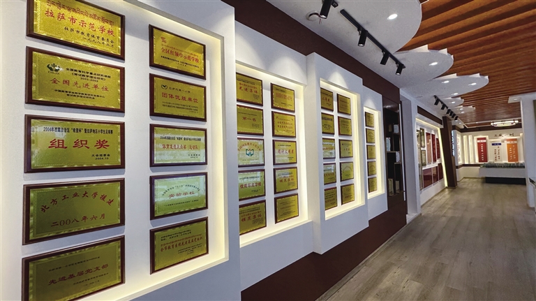 在校史館的圖片墻上,學校舉行“六一”文藝演出的照片吸引了記者的注意。從1985年羅布林卡黑白照片里孩子們歡快表演的身影,到上世紀90年代初宗角祿康公園彩色照片中孩子們慶祝“六一”國際兒童節的文藝表演,再到1992年至2012年間,學校舉辦慶祝“六一”國際兒童節文藝演出。20年間,學校進一步豐富特色教育,設有管樂隊、民樂特長班、手工特長班、美術特長班等,并組織管樂隊學生在布達拉宮廣場參加各類活動,為學生全面發展搭建起更廣闊的展示平臺。